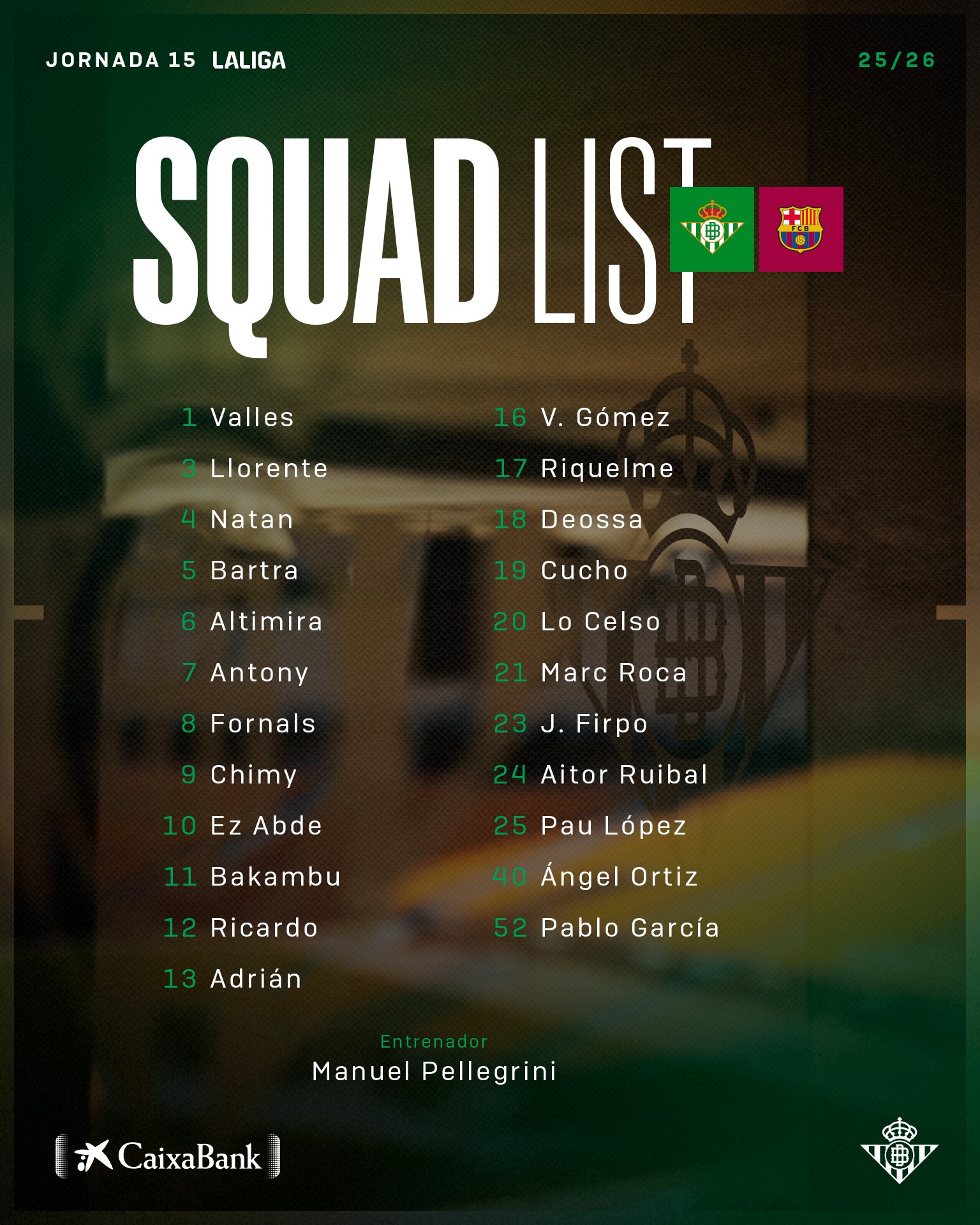 הבטיקוס ממוקמים כרגע במקום החמישי בליגה, בשיוויון נקודות עם אספניול הכיפית והאיך-לעזאזל-היא נמצאת-שם-שתרד-ליגה-כבר. הירוקים לבנים מחזיקים במאזן של 24 נקודות (ב-14 משחקים), ויחס שערים של 22:14. החלק היותר מעניין ופחות יבש לגביי הקבוצה של פלגריני, היא שהיא בפורמה של 8 משחקים ללא הפסד בכל המסגרות (6 נצחונות, 2 תוצאות תיקו), ובעצם למעט ההפסד לאתלטיקו מדריד בסוף אוקטובר, בטיס לא הפסידה מאז ה-31.8 (!!!), אז נכנעה לבילבאו.