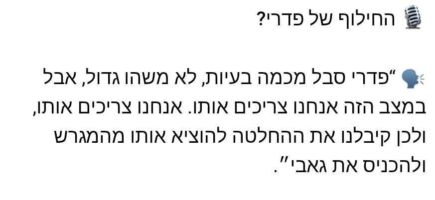 יהיה קשה לעשות משהו הגומלין, אבל בשביל זה נצטרך לוותר על דרבי ופער מריאל. יותר הגיוני שפליק יעלה בהרכב מלא גם ביום שבת.