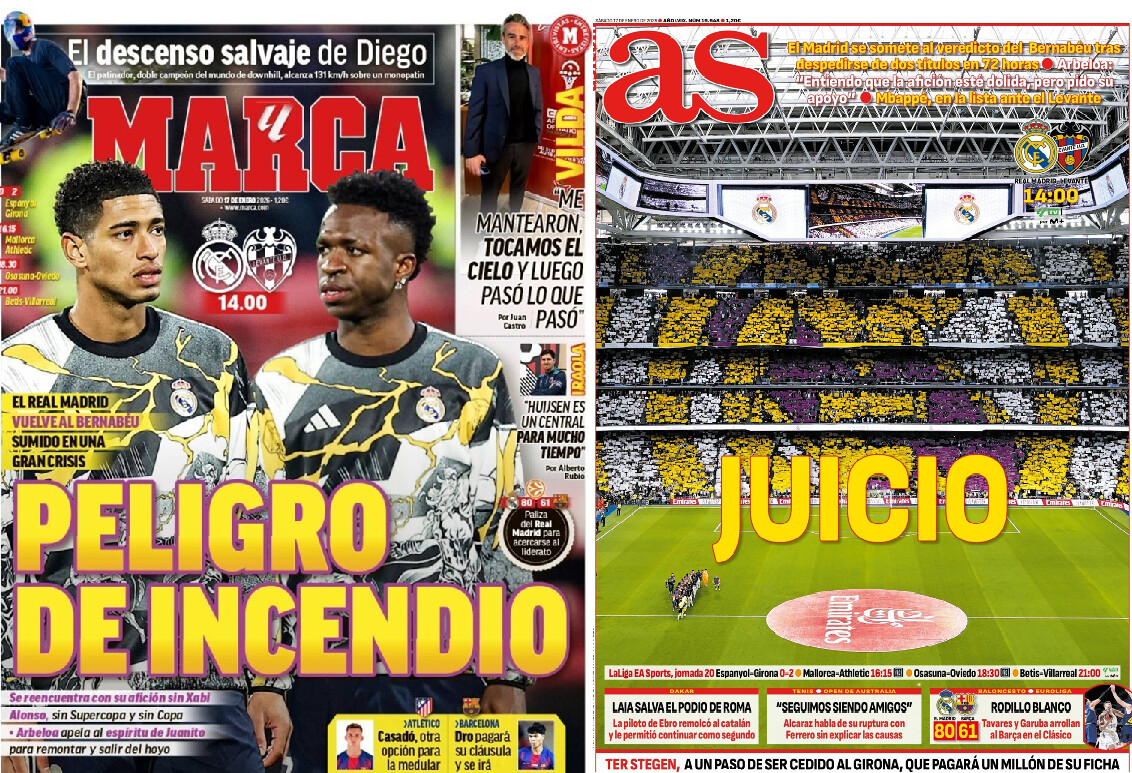 קבלת הפנים של הברנבאו “לגיבוריו” היא הדבר המסקרן ביותר, הרבה יותר מההרכב שיעלה ארבלואה – הילד התורן (המאמן הגן על שחקני קסטיליה) או הפצוע התורן (ודיבר גם על הכושר הגופני) או המאכזב התורן. ההערכות הן שהאוהדים יבואו לפרוק עול ויקבלו את השחקנים בבוז צורם. בואו נאמר שזה לא בדיוק הזמן להיקלע לפיגור מוקדם (ונספר לכם שהעונה עשר פעמים ריאל מדריד הייתה בפיגור – וניצחה רק שלוש פעמים). האם השחקנים ירצו להוכיח את עצמם? לזכות באמון הקהל מחדש? מסוגלים להגיב? ארבלואה, שהגיע לוולד בבאס לפני שבע בבוקר (06:57) התייחס לאפשרות של הבוז: “אני מכבד מאוד את דעתו של הברנבאו ומבין שהאוהדים פגועים, אבל אני הולך לבקש את תמיכתם בשחקנים. ההישגים הגדולים הושגו יחד איתם. חואניטו אמר ש-90 דקות בברנבאו הן הרבה זמן, והוא לא אמר 90 דקות נגד שחקני הקבוצה. אני מבקש את תמיכתם”. עוד אמר: “אנחנו מרוכזים ומלאי אנרגיה, זה משחק קריטי להמשך המאבק על האליפות. החזרה לאצטדיון הביתי מדרבנת אותנו מאוד”. הוא הבטיח שהוא ישן טוב מאוד, וכשנשאל מה הוא צריך אמר “אני צריך זמן אבל את זה אין” והבהיר כי כל כישלון “גרם לי להשתפר, לשאול שאלות, זה מקרב אותך למטרה. אני לא מפחד ולא מפקפק ולו לרגע”. ארבלואה הבהיר: “אני רוצה לראות ריאל מדריד שיוצאת לנצח מהדקה הראשונה, שאנחנו תוקפים כל הזמן, יש לנו פילוסופיית כדורגל שנעבוד עליה, אנחנו חייבים תשוקה והתלהבות”.
