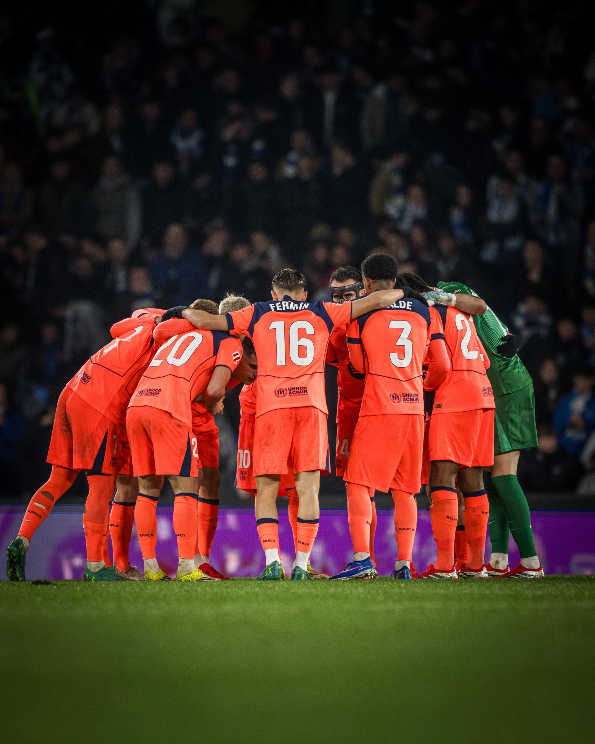 שחקן סוסיאדד לוחץ את קונדה ומחלץ את הכדור. זה פוגע בקונדה וחוזר לכיוון השער של בארסה בכלל.