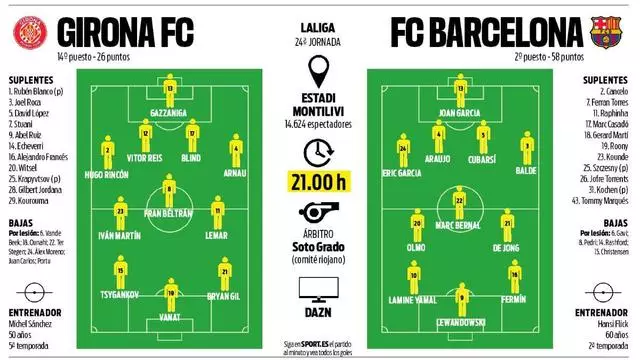 הג’ירונאים יגיעו למשחק אחרי שראו מה אפשר לעשות להגנת ברצלונה, בפעם ה-13509713509135, וינסו להיות יותר אתלטיקו ופחות אלצ’ה. האדומים-לבנים חייבים להשיג נקודות כדי לברוח מהקו האדום, ממנו הם רחוקים 2 נקודות בלבד. לא מדובר פה באיזושהי הגנת ברזל, למי שתהה, כאשר היריבה הערב הוציאה מהרשת של גאזאניגה 37 שערי חובה, ומנגד כבשה 22, שזה כמעט הכי מעט בליגה ופחות משער למשחק בממוצע. אבל כזכור - אין כמו הגנת ברצלונה כדי לשפר מאזנים.