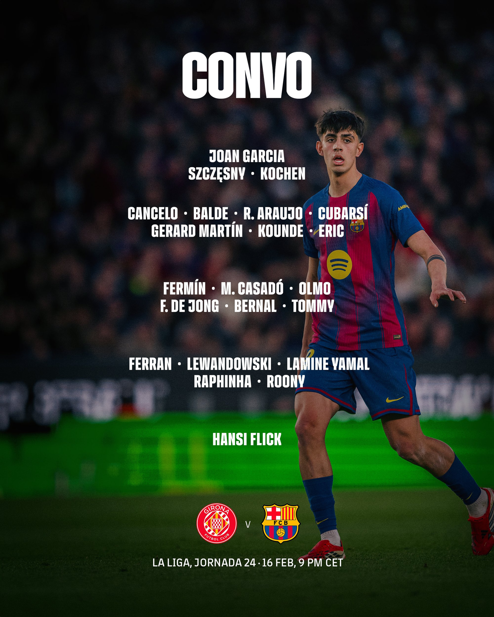 ברצלונה תגיע ללא ראשפורד, שימשיך להיעדר, וללא שאר הפצועים הרגילים. פליק הרגיע/הבטיח/התפלל, במסיבת העיתונאים לקראת המשחק, שפדרי יחזור עוד החודש ושגאבי יצטרף אליו לא הרבה אחרי (אם כי לא ממש אפשר לבנות עליו העונה). אבל בינתיים הגרמני יצטרך להסתדר עם מה שיש, ומה שיש כרגע זה מה שהיה מול אתלטיקו, בתוספת המאוד חשובה של ראפיניה בלולי שיחזור לסגל.