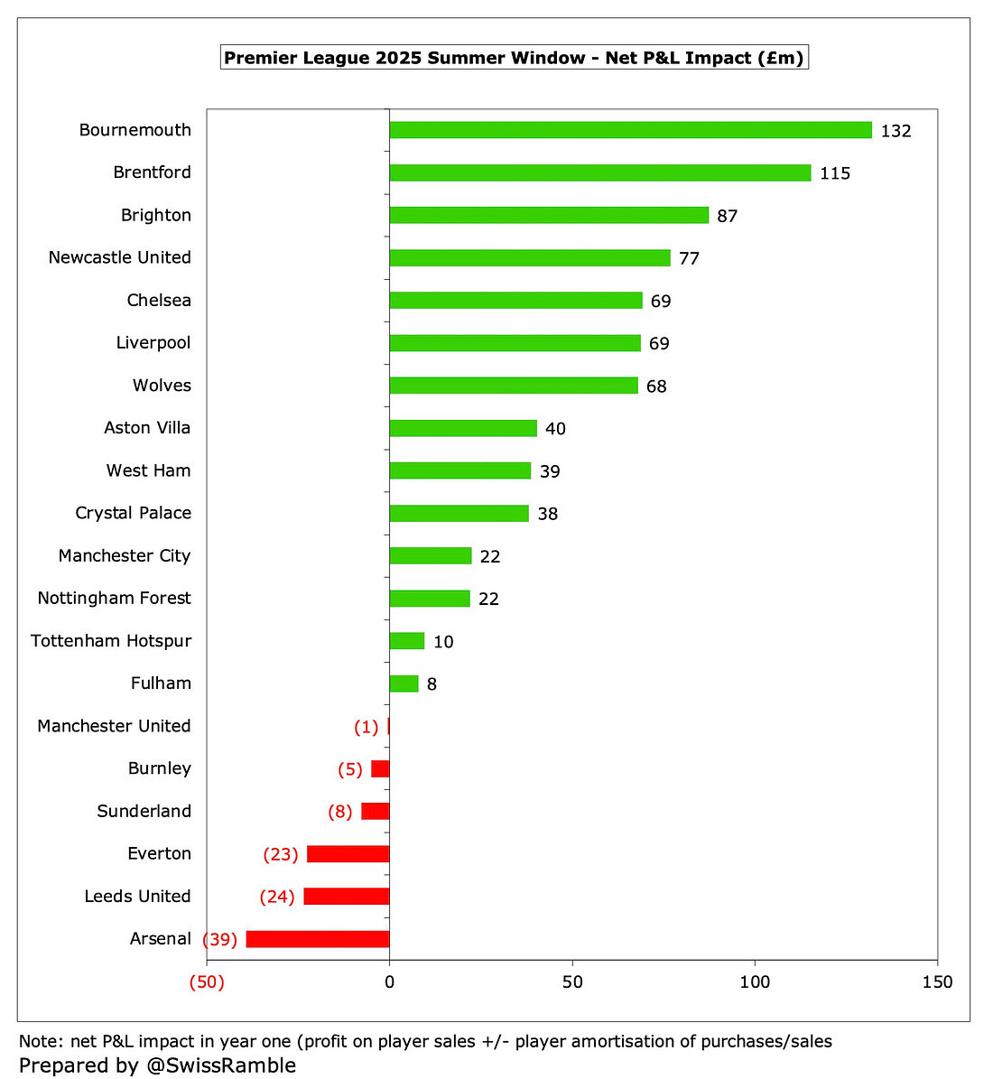 זה מה שיצא לו, והתוצאה די מפתיעה. רוב הקבוצות רשמו רווח, אפילו ליברפול למרות כל הרכישות. זה עוד יקשה עליה אחר כך, אבל לא עכשיו.