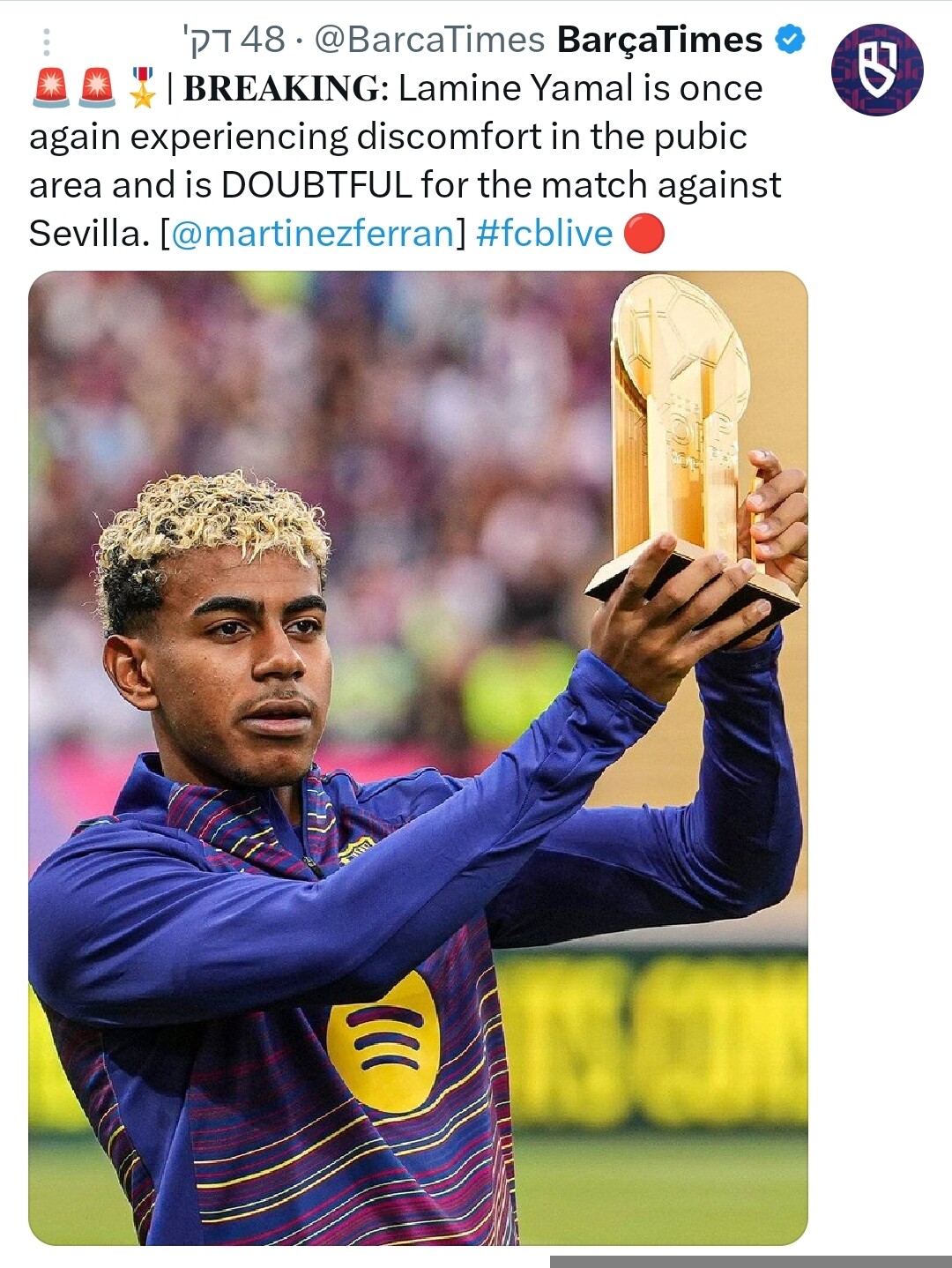 שוב לפי MD , באלדה ולאמין התאמנו רגיל היום וצפוים להיות בסגל מול סוסיידד עם עיניים על פאריז.