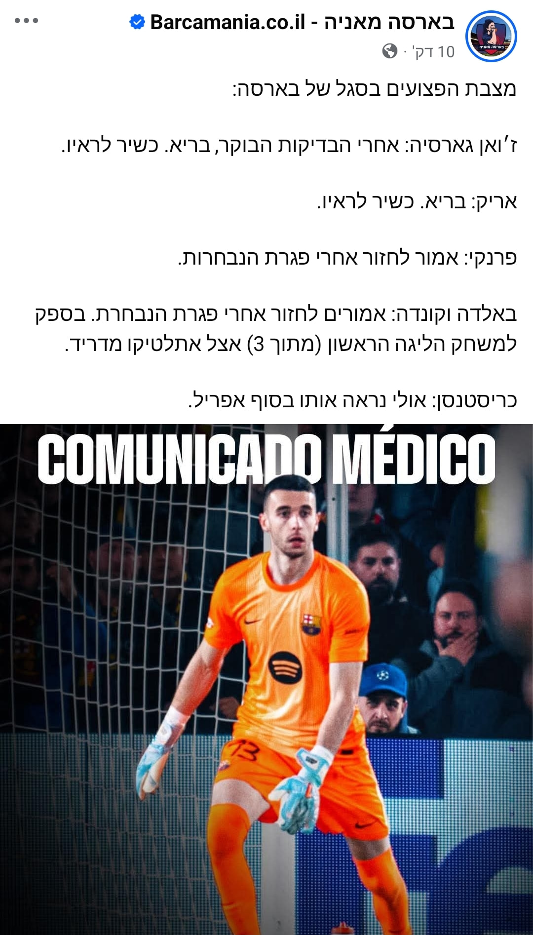 בנוסף, יגיע אולי בריא, אבל לא בכושר לקלאסיקו ב 10.5.