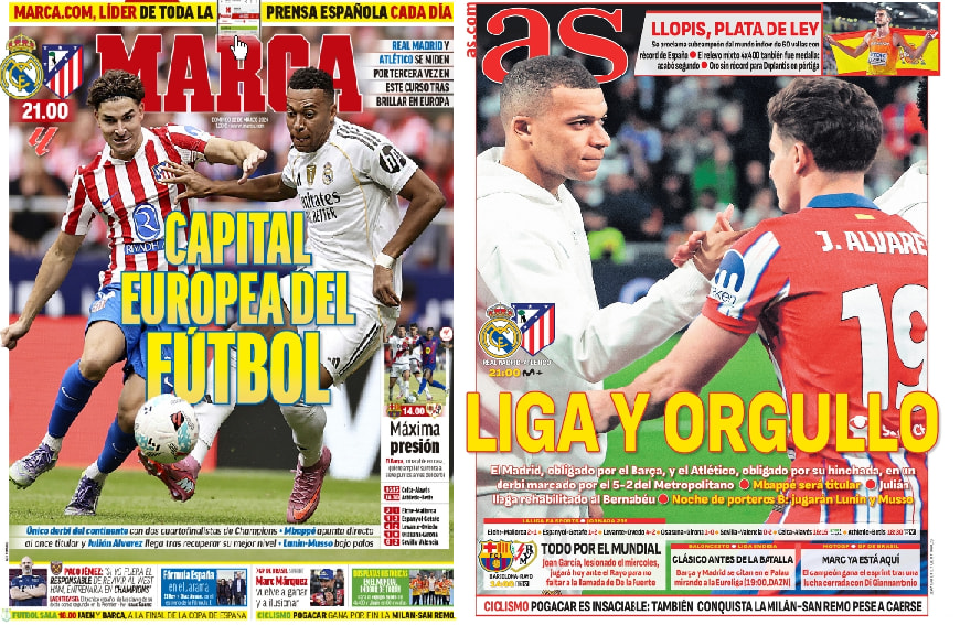 סימאונה שעומד בפני ציון דרך מדהים – דרבי מספר 50 נגד ריאל מדריד, הקבוצה אותה פגש יותר מכל אחת אחרת כמובן מאז הדרבי הראשון שלו באפריל 2012, היה קצר מאוד במסיבת העיתונאים. הוא יודע שהמגרש הוא זה שמדבר. “הדרבי הוא משחק חשוב בגלל היריבות הגדולה בעיר. אנחנו יודעים שהאוהדים שלנו מאוד מתרגשים מהמשחקים האלה, וגם אנחנו”. הוא נשאל על לחץ רגשי וספורטיבי שקיים: “זה משחק שמשוחק עם הרבה רגש והתלהבות. אנחנו מנסים לעשות כמיטב יכולתנו כדי לקחת את המשחק לנקודה שבה נוכל לפגוע ביריב”. הוא לא מודאג בכלל מהעומס: "זה נמצא במחשבות שלנו אבל זו בטח לא דאגה עבורינו. “כולם מאוד להוטים לשחק והם מקשים עליי כי יש לי סגל נהדר. ננסה לנהל את לוח הזמנים הצפוף בצורה הטובה ביותר עבור הקבוצה ועבור המועדון”. סימאונה הפסיד בכל שלושת הדרבים הראשונים שלו בליגה נגד ריאל ומאז הפסיד רק שישה כשהוא מנצח שבעה. “הדרבי כבר החליף צבעים”, נכתב במדויק במארקה.