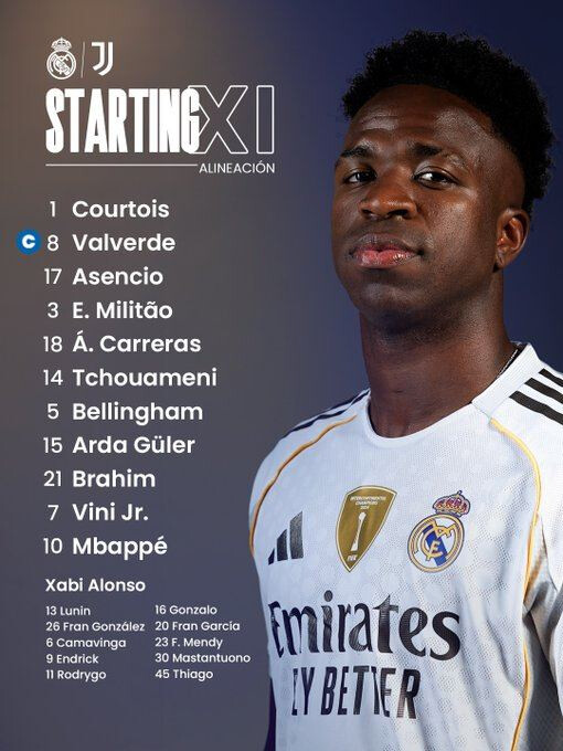 ריאל מדריד – הרכב משוער: טיבו קורטואה| פדה ואלוורדה, ראול אסנסיו, אדר מיליטאו, אלבארו קארראס| אורליאן טשואמני (אדוארדו קמאבינגה), ארדה גולר, ג’וד בלינגהאם| ברהים דיאס (פרנקו מסטאנטואונו), ויניסיוס ג’וניור וקיליאן אמבפה