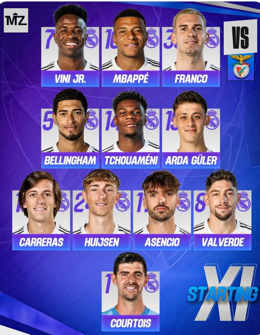 ריאל מדריד - הרכב משוער: טיבו קורטואה| פדה ואלוורדה, ראול אסנסיו, דין האוסן, אלבארו קארראס| אורליאן טשואמני, ארדה גולר, ג’וד בלינגהאם, פרנקו מסטאנטואונו| ויניסיוס ג’וניור וקיליאן אמבפה