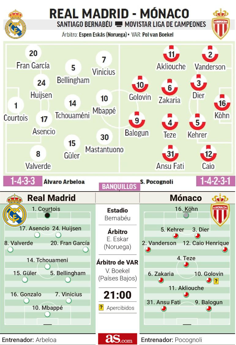ריאל מדריד מגיעה למשחק נגד מונאקו כשהיא מנסה ‘לשנות אווירה’ בזכות ליגת האלופות מה שעבד כל כך הרבה פעמים לאורך ההיסטוריה. מצד אחד שריקות הבוז לשחקנים, שנמשכו לאור כל ה-0:2 על לבאנטה – עדיין מהדהדות, תשאלו את ויניסיוס ג’וניור שקונן גם בפני המאמן באימון המסכם, ומצד שני בשורות טובות הגיעו אמש והפער מברצלונה המוליכה הצטמצם לנקודה. אלבארו ארבלואה שמקווה לבכורה מוצלחת כמאמן בליגת האלופות, יודע שהקבוצה חייבת להשיג מחדש את אמון האוהדים והדרך לשם היא יכולת דומה יותר למחצית השנייה מיום שבת. ניצחון על מונאקו יוכל להבטיח שריאל תהיה תלויה בעצמה במחזור הסיום בליגת האלופות וכך תהיה לה האפשרות לסיים בשמינייה ולהתחמק משלב הפלייאוף בניגוד לעונה שעברה. ארבלואה ממשיך לצייר שכמעט הכל ורוד: “הקבוצה מצליחה (כבר? אחרי משחק אחד? באמת?) והשחקנים להוטים מאוד. אנחנו יודעים עד כמה ליגת האלופות מפעל חשוב וניצחון מחר יקרב אותנו למטרה”. עוד אמר: “נעשה כל מה שצריך, באתי לכאן כדי להילחם על כל התארים ונשארו לנו הליגה וליגת האלופות”. ריאל העונה בברנבאו ניצחה ב-11 מ-13 משחקיה, בין היתר הפסידה לסיטי.