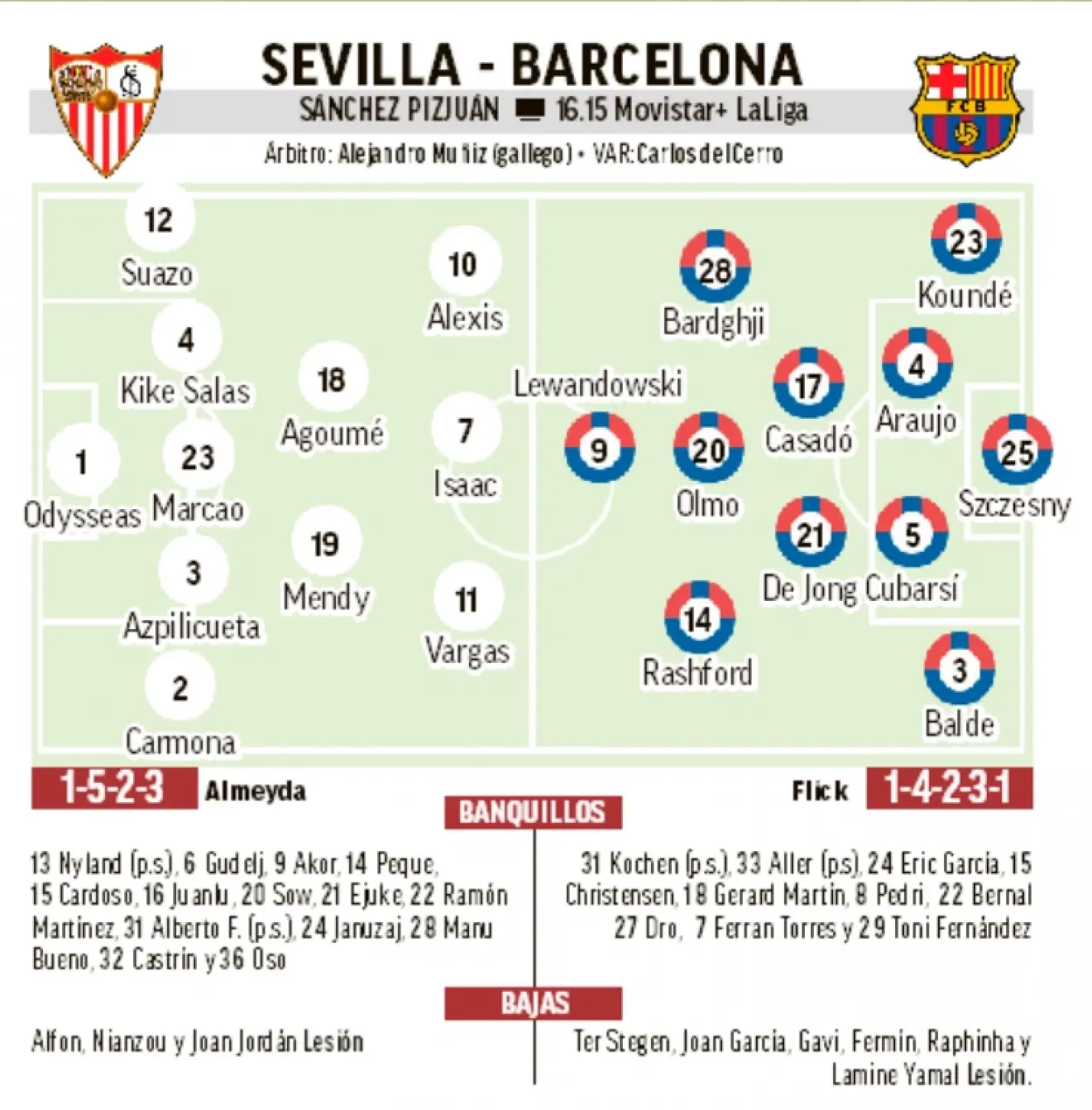 פציעות: מאטס, גאבי, פרמין, ראפיניה, לאמין, ז’ואן גרסיה