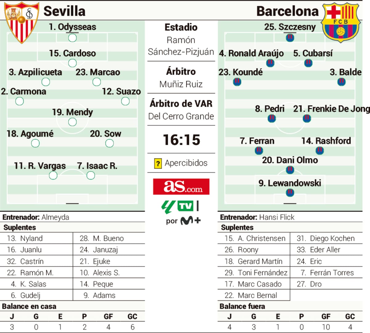 הקבוצה מסביליה, שעונה לשם “סביליה”, מגיעה למשחק ממקום שהיא לא הייתה בו כבר כמה שנים טובות - העשירייה הראשונה בטבלת הלה-ליגה. 3 נצחונות (ג’ירונה, אלאבס, ראיו), תיקו (אלצ’ה) ו-3 הפסדים (בילבאו, חטאפה, ויאריאל) מציבים את האנדלוסים במקום התשיעי, נכון לכרגע, ועם מאזן שערים של 11:10. החלק המעניין ביותר אצל החבר’ה באדום לבן, מעבר לזה שאזיפיליקווטה ממשיך לשחק גם בגיל 78, הוא חזרתו לליגה של לא אחר מאשר אלכסיס פריקינג סאנצ’ז האקס(טרה לארג’) הברסאי. מה שאומר לפחות צמד צ’יליאני מחר.
