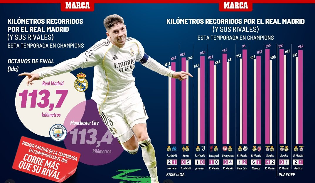 רק באירועים חריגים מאוד המארקה וה-AS עם אותה הכותרת ואותה התמונה בדיוק: “בלתי נשכח” על רקע פדה ואלוורדה חוגג כאשר כל השחקנים חוגגים ומצביעים על גיבור ה-0:3 נגד מנצ’סטר סיטי - ויניסיוס ג’וניור מצד ימין וברהים דיאס מצד שמאל. בשני העיתונים פדה קיבל את הציון 4 כוכבים.