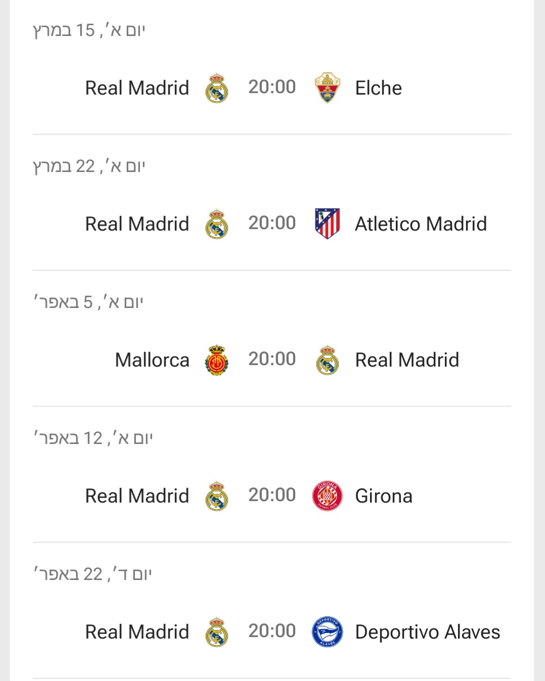 אכן, אז שתי הקבוצות קיבלו במידה שווה רצף של משחקי בית. תמיד יש אילוצי לו”ז, זכויות שידור גם בגלל החלוקה של משחקי הבית והחוץ של כל הקבוצות ממדריד וכל הקבוצות מברצלונה. הכל הגיוני לגמרי וכמו שאתה רואה גם שוויוני.