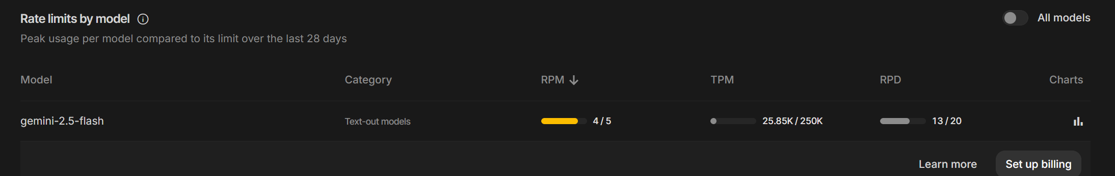20 בקשות ביום סה”כ (5 בדקה). הוספתי עכשיו מגבלה נוספת כי אחרת זה תוך שנייה ייגמר, ה-AI פתוח כרגע בעיקר למנהלים. אני אנסה לחקור אם יש מודל זול שיעלה גרושים ונוכל לפתוח יותר בקלות.