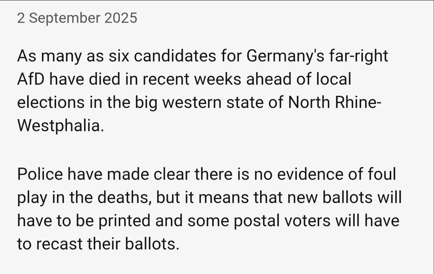 אין שום קונספירציה כמובן. 7 פוליטיקאים מה AFD, הלא ממש נוחים לאדונים שלנו, מתים בפתאומיות ואין שום דבר מוזר בזה.