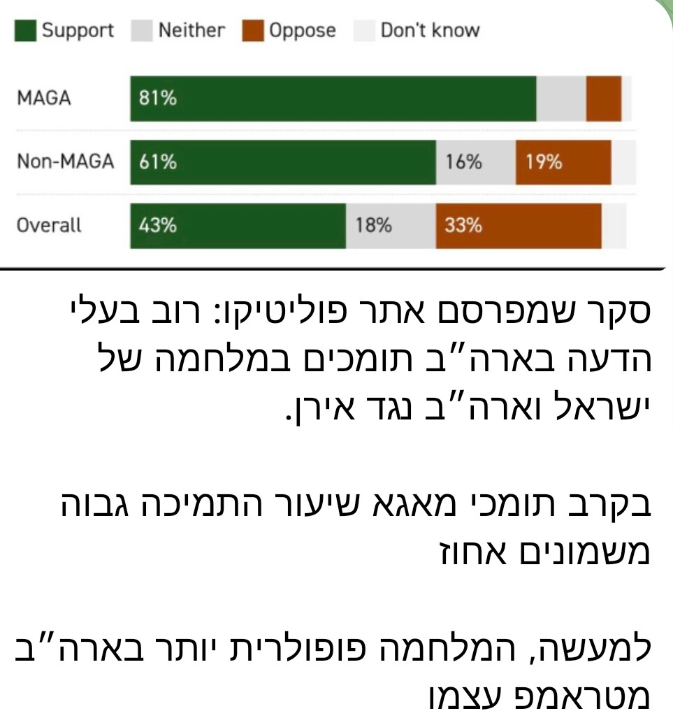 בכל אופן, אותי זה הפתיע, עם כל הדיבורים על הבדלנים בימין האמריקאי שעצבנים על המלחמה. והיו עוד סקרים כאלה אאל’'ט