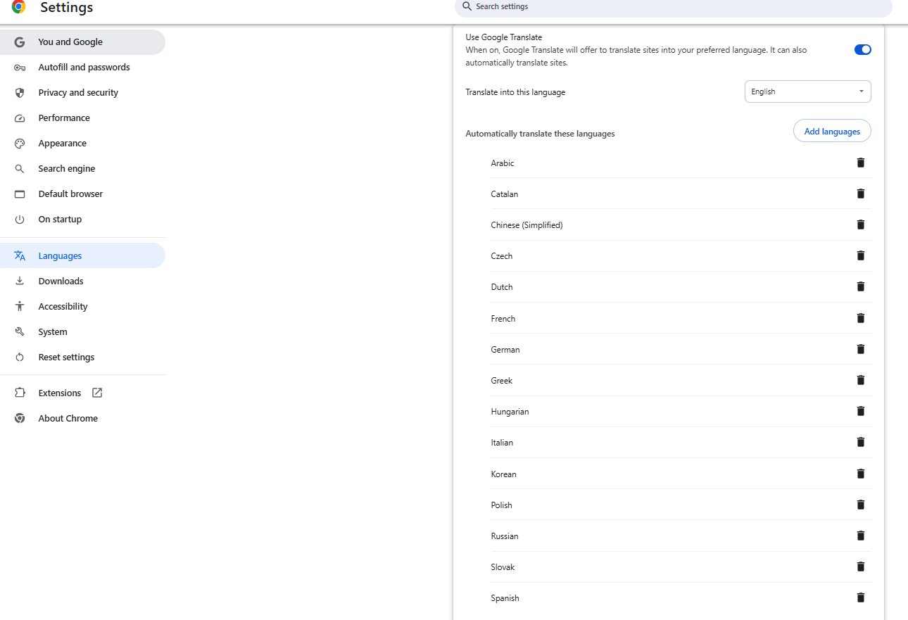 בכרום יש תרגום אוטומטי. כל אתר בשפות שבחרת יתורגמו אוטומטית לשפה שבחרת. לא יודע איך זה בדפדפן המוזר שלך.