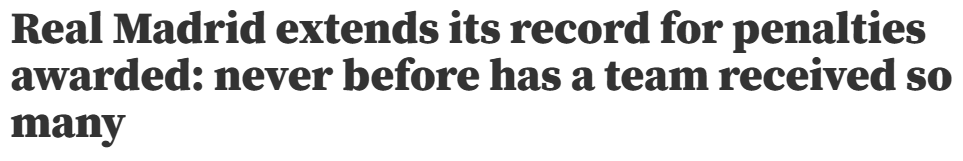 ב MD הקטאלוני עשו מחקר מעמיק על הפנדלים שמקבלת ריאל מדריד, והגיעו למסקנה שהשנה, עם 13 פנדלים עד עכשיו, זה שיא של הליגה בכל הזמנים.