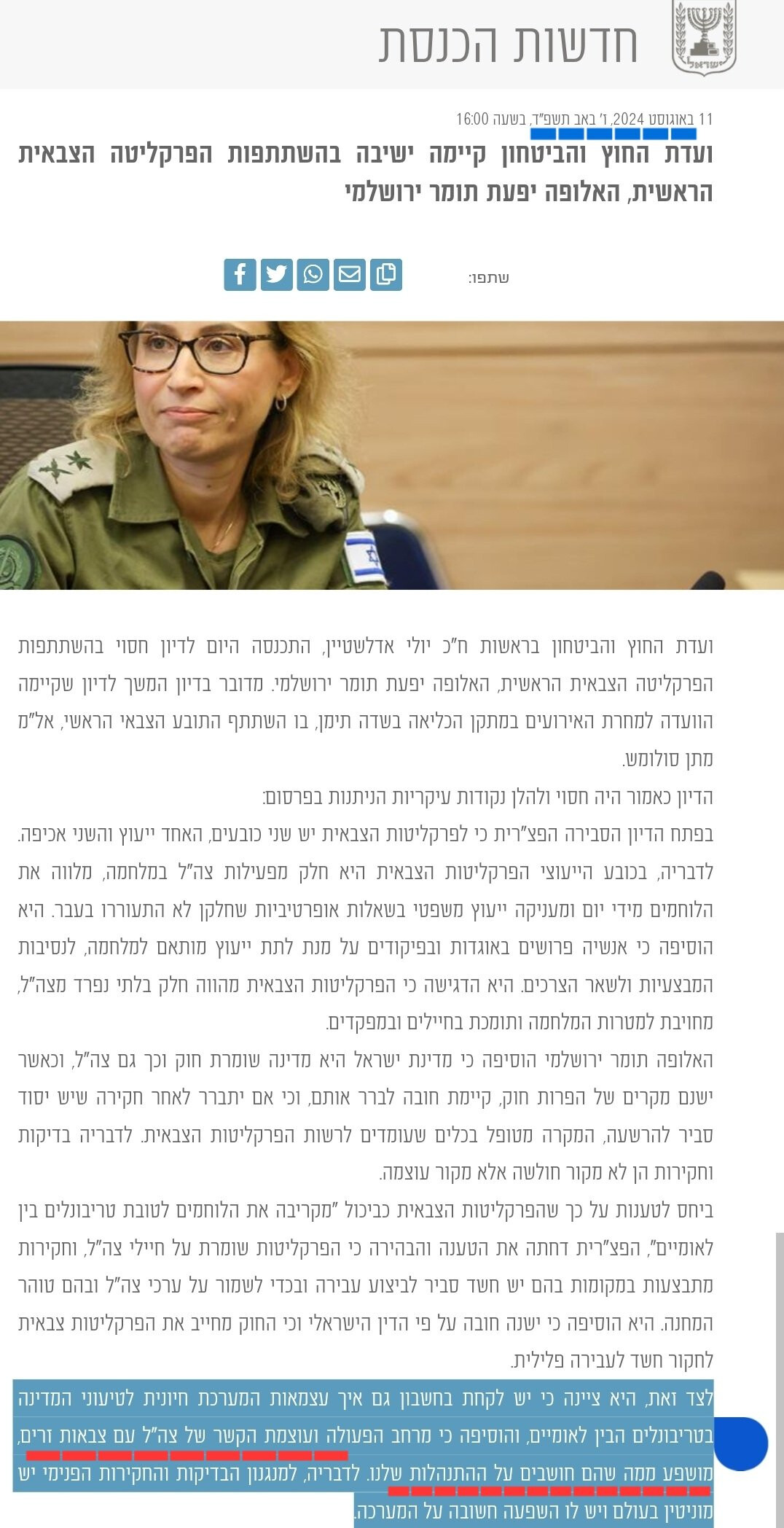 היא היתה מעדכנת צבאות זרים על פעולות משפטיות נגד חיילינו. לא צריך להיות עיוור כדי להבין שהיתה פה מדיניות נגד חיילינו, וזה בלתי נסלח.