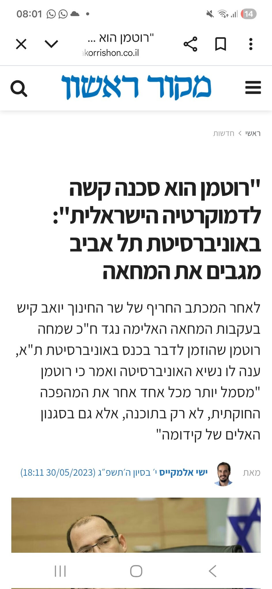 משה לצערי אנחנו חיים במדינה פאשיסטית 70% ואתה ממשיך עם הווטאבאוטיזם שלך. לח”כ ערבי קוראים מחבל כי הוא ערבי, ליהודי לא ציוני אסור ללמד ובינתיים היום בבית המשפט נתניהו מתייחס למתנה שאשתו קיבלה ממילצ’ן על סך 12 אלף (לא זוכר אם דולר או שקל) ואומר שזו לא המתנה הכי יקרה שהם קיבלו כי מילצ’ן גם מימן לבן שלהם לימודים יקרים יותר. נתניהו טען שזה היה כשלא היה איש ציבור. הבעיה שהבנים שלו למדו כשהוא היה ראש ממשלה ולא לפני. אתה תמשיך להצביע לפאשיסטים או לתומכי פאשיסטיים ולטעון שאתה מתנגד לנתניהו ולכל מה שהוא מייצג כשבפועל אתה תהיה זה ששומר על שלטונו.