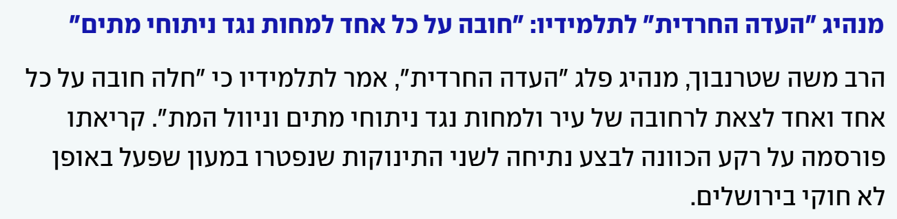 נ.ב. לפני שמישהו יקפוץ - הפמפלט הזה אכן נכון בהחלט גם עבור המגזר הערבי (שאכן יש קווי דמיון רבים בין ההתנהלויות של שני המגזרים האלה - ושכל אחד ייקח מזה את מה שהוא רוצה). אבל, כפי שכבר כתבתי בהודעה אחרת, לא מזמן - יש בכל זאת הבדלים מהותיים בין שני הציבורים האלה, שגורמים לכך שהטיפול במגזר החרדי הוא דחוף ואקוטי בהרבה. ובראשו: הסיפור הדמוגרפי.
