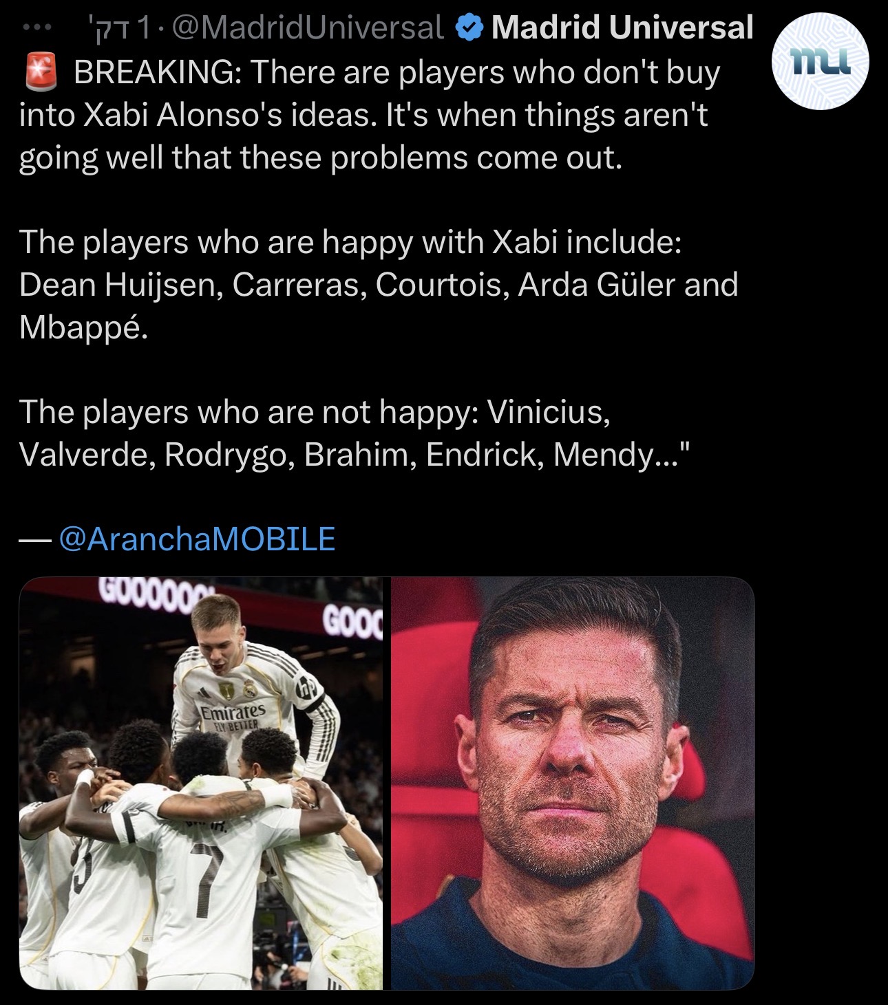 אגב, ברור ש"הרשימה השחורה" פה היא אך ורק ויניסיוס. כל השאר אלו שחקנים שלא רואים דשא ופדה, שמתוסכל מהיכולת הבינונית שלו בתחילת העונה.