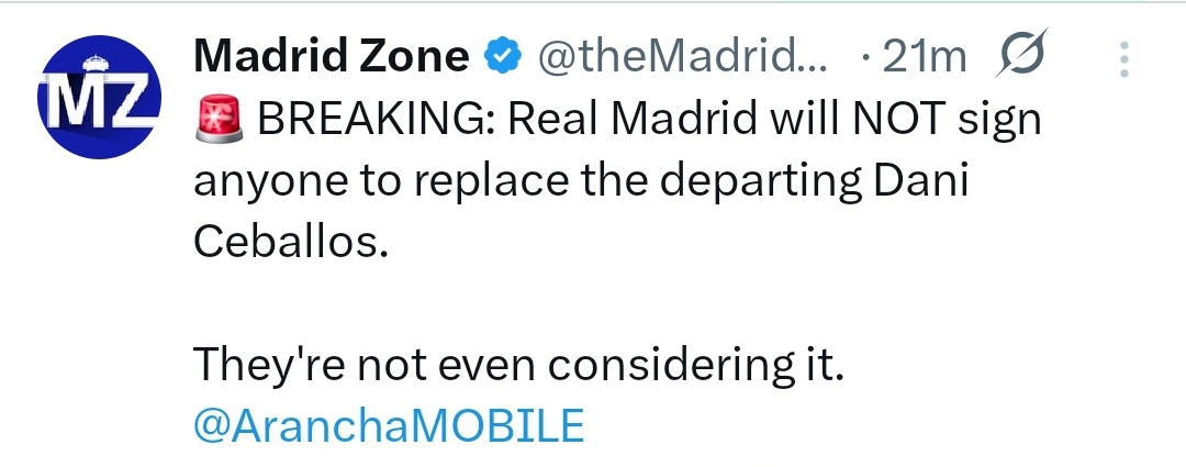 התחילו דיווחים שייתכן וטרנט ימצא את עצמו כבר הקיץ במנצ’סטר סיטי. בינתיים זה פורסם בחשבון הטוויטר של indyk (ככל הנראה קבוצת עיתונאים בריטיים) שמתגלה כדי אמין לאורך הקיץ האחרון, ובכתבה שלהלן: Exclusive: Trent Alexander-Arnold could already leave Real Madrid for shock PL return | CaughtOffside