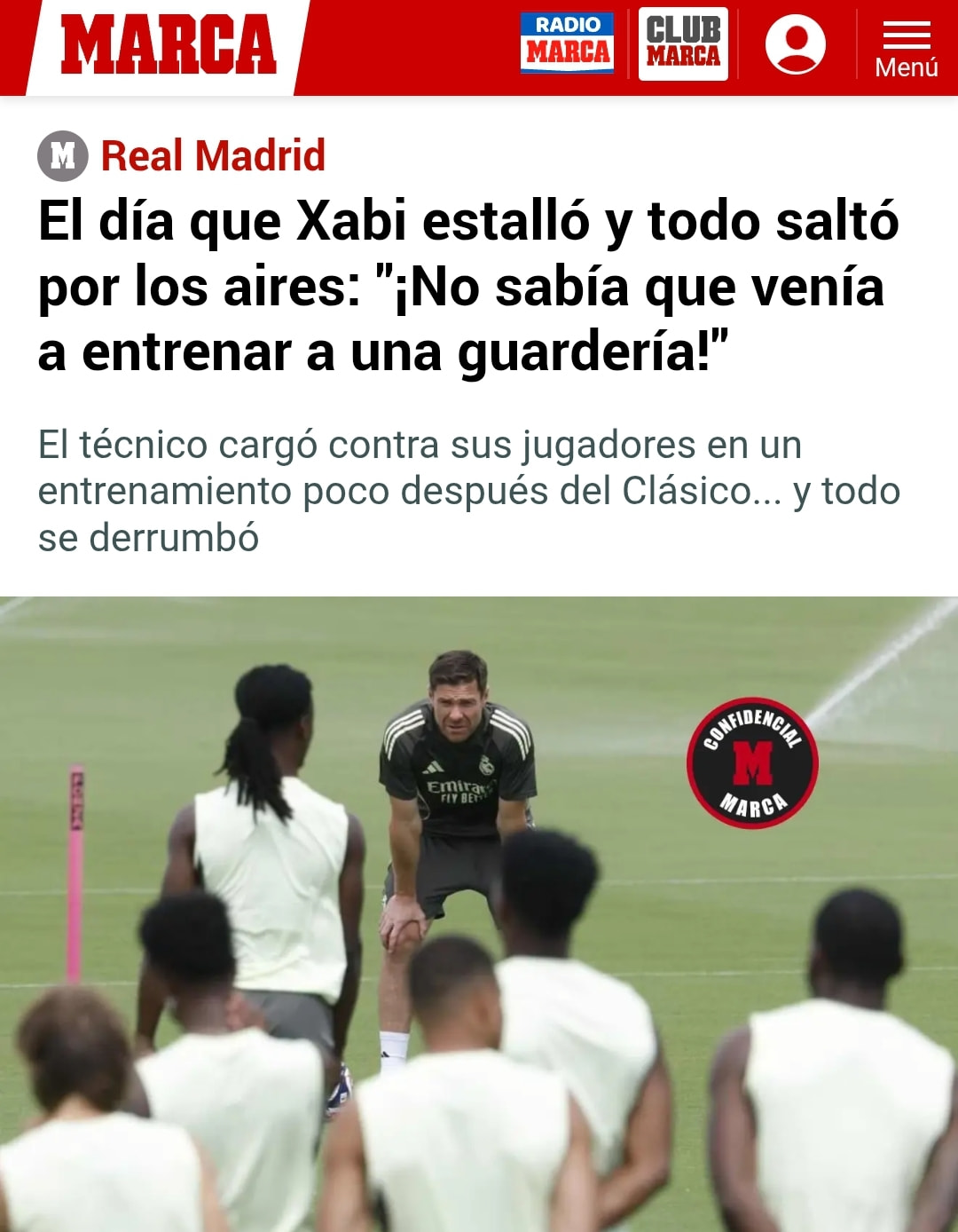 המארקה חושף שכבר בנובמבר היה פיצוץ גדול בין המאמן לשחקנים והוא היה יכול לעזוב. היום שבו צ’אבי אלונסו התפוצץ והכל התפוצץ: “לא ידעתי שאני בא לאמן בגן ילדים!” - המאמן התפרץ על שחקניו באימון זמן קצר לאחר הקלאסיקו… והכל התפרק.