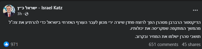 כבר היום ראינו איך התושבים נענו להוראת צהל להתפנות מטהראן. זה חשוב, ומראה שהעם האיראני מקשיב לנו.