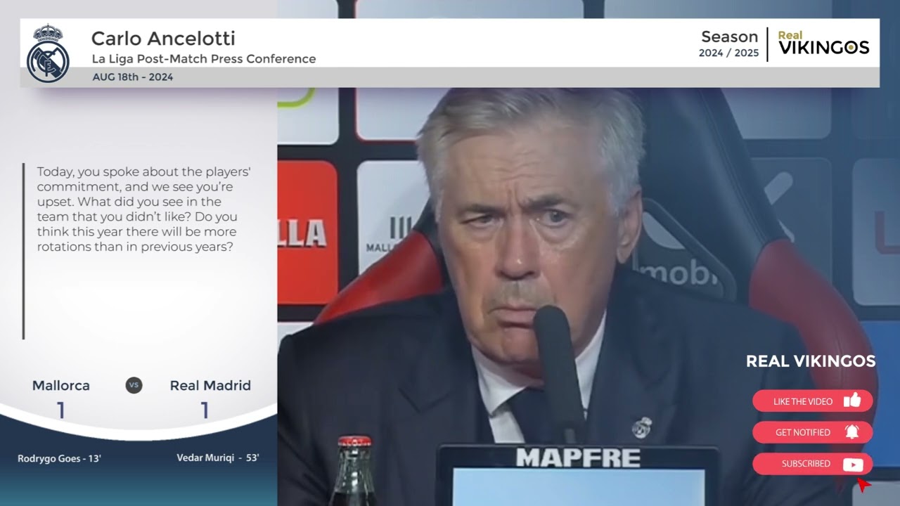 מחויבות השחקנים: “כולנו ראינו במשחקים האחרונים כמה קשה הם נלחמו בסופרקופה ובכלל… יש לנו סגל נהדר עם בחורים שמוכנים לעשות הכל. בואו לא נשכח שיש שחקנים עם שישה גביעי אירופה. נראה שזה נשכח מהר. זה מה שהפך את ריאל מדריד למועדון הטוב ביותר בהיסטוריה”.