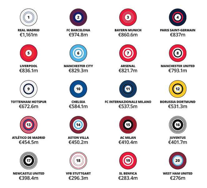 דלואיט, חברה שמתמחה בניתוחים פיננסיים, פרסמה את הסקירה השנתית שלה על עולם הכדורגל האירופאי.