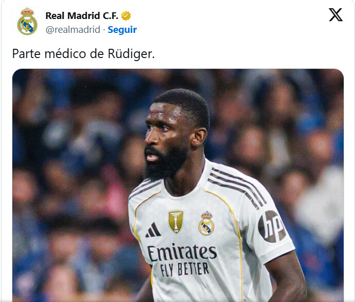 הקורבן השני העונה: אנטוניו רודיגר| במסיבת העיתונאים ב-16:30 צ’אבי אלונסו דיבר בחיוך על פגרת הנבחרות החיובית ואף אחד לא נפצע (איזה כיף), כולם בריאים. אז זהו שלא. רודיגר סבל מפציעה בדקות האחרונות של האימון המסכם לקראת ריאל סוסיאדד, כך מסתבר - פציעה בשריר הירך ברגל שמאל, ולפי הערכות ראשוניות ייעדר לא פחות משלושה חודשים (!) יחזור לשחק לקראת 2026 אם הדיווח נכון, מכה ענקית ואולי צל כבד לגבי האפשרות שימשיך בריאל מדריד. יש דיווחים גם על חודשיים ויש כאלו על בין לבין - עשרה שבועות.