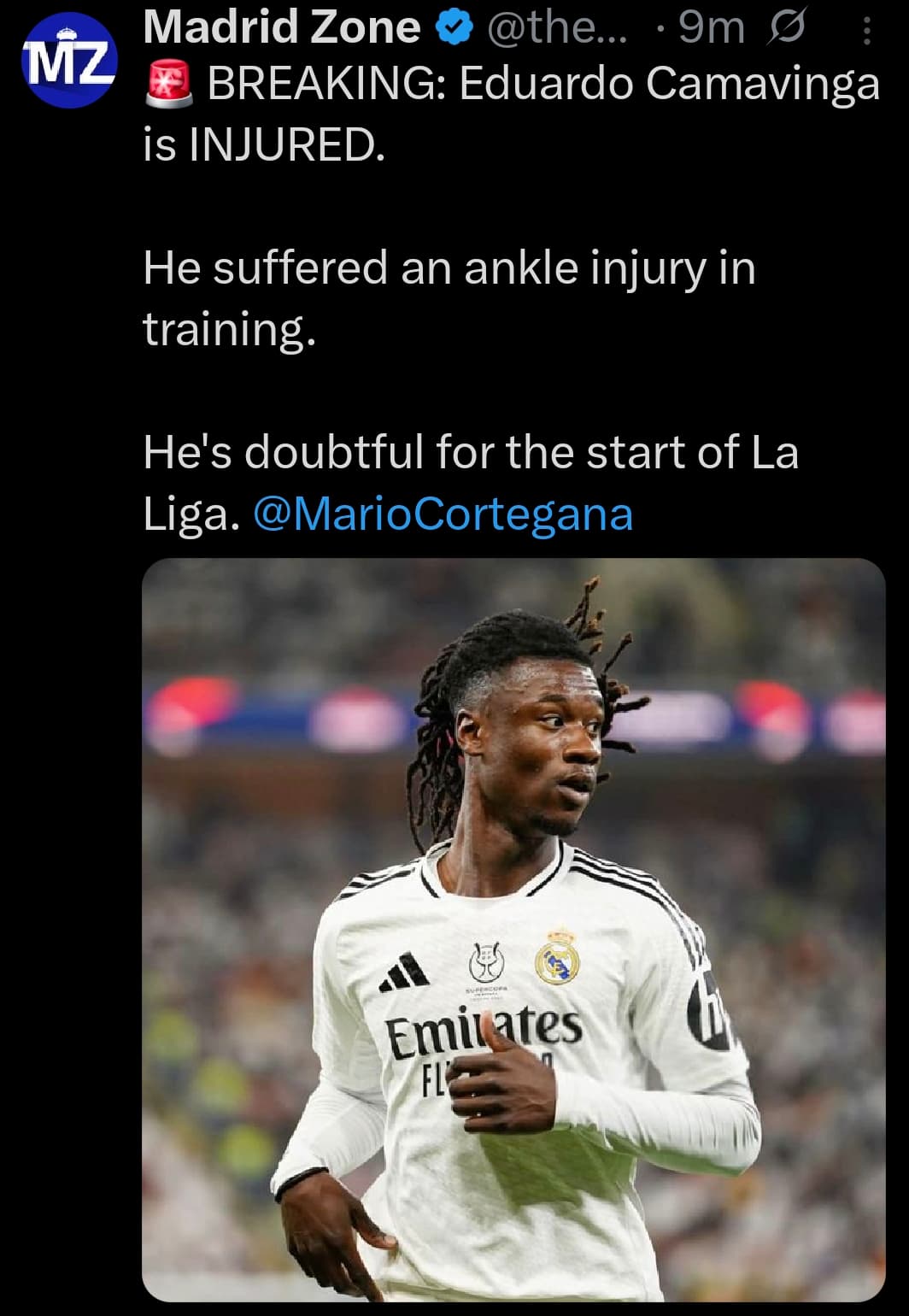 מעבר לכך אני נגד שיתוף של ג’וד בלינגהאם ואדוארדו קמאבינגה במשחק הקרוב. קמא לא מפסיק להיפצע ולגבי ג’וד זה אופטימי מדי לא רק אם מסתמכים על הדיווחים מהמועדון לגבי פרק זמן ההיעדרות אלא עוד כתבות שהיו וכל מיני דוקטורים שהתראיינו.