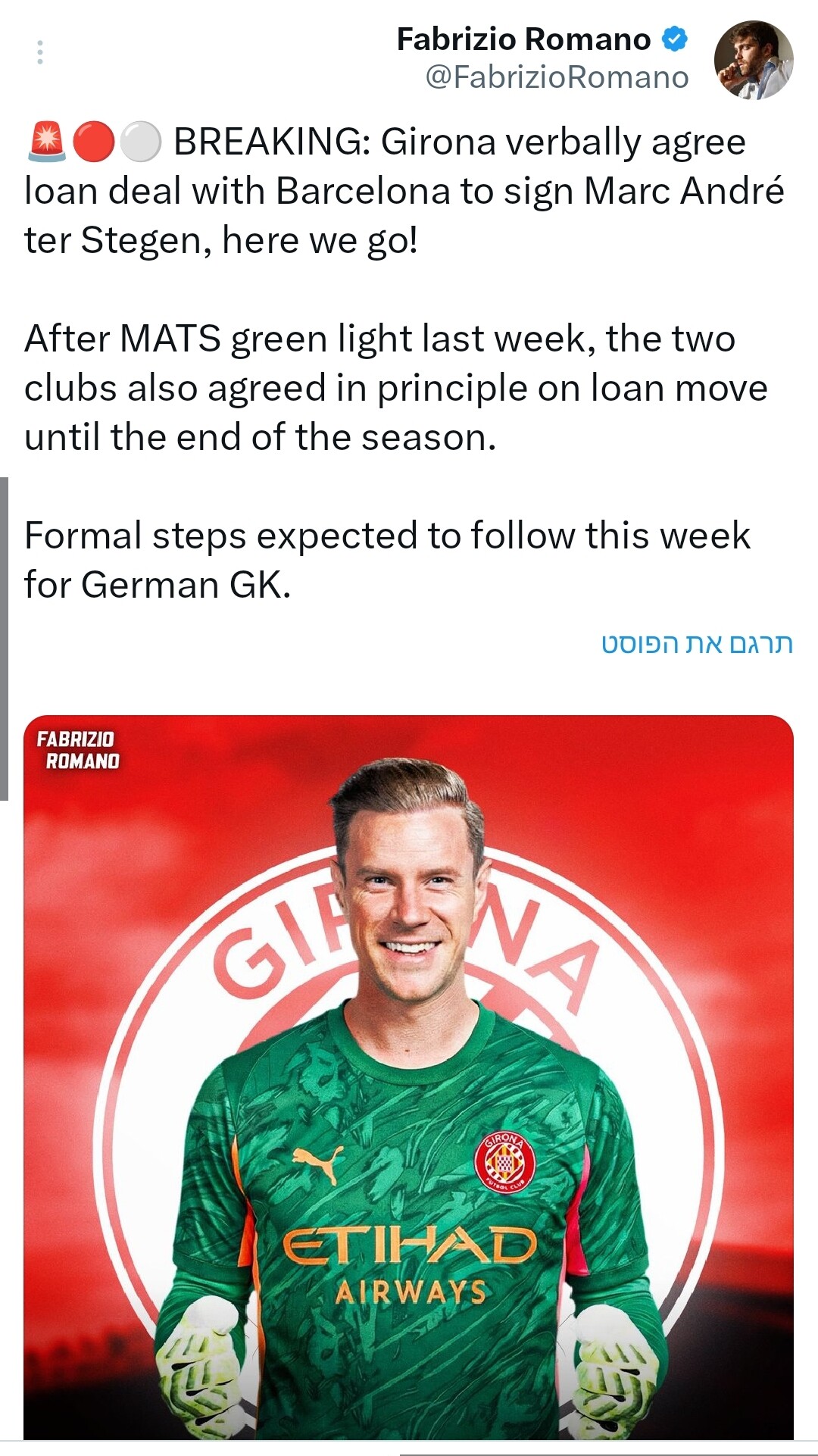 אתמול גם רומאנו פירסם ששני המועדונים רוצים לשבת לגבי העסקה כדי ‘‘לשמור על היחסים’’.