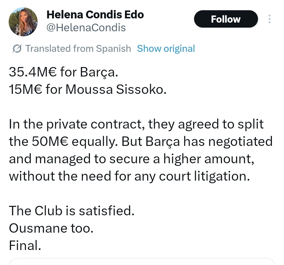 הסעיף שחרור של דמבלה היה 30 מיליון. פסז’ שילמה 50 שהתחלק חצי חצי בין דמבלה ובארסה. לא זוכר מעבר.