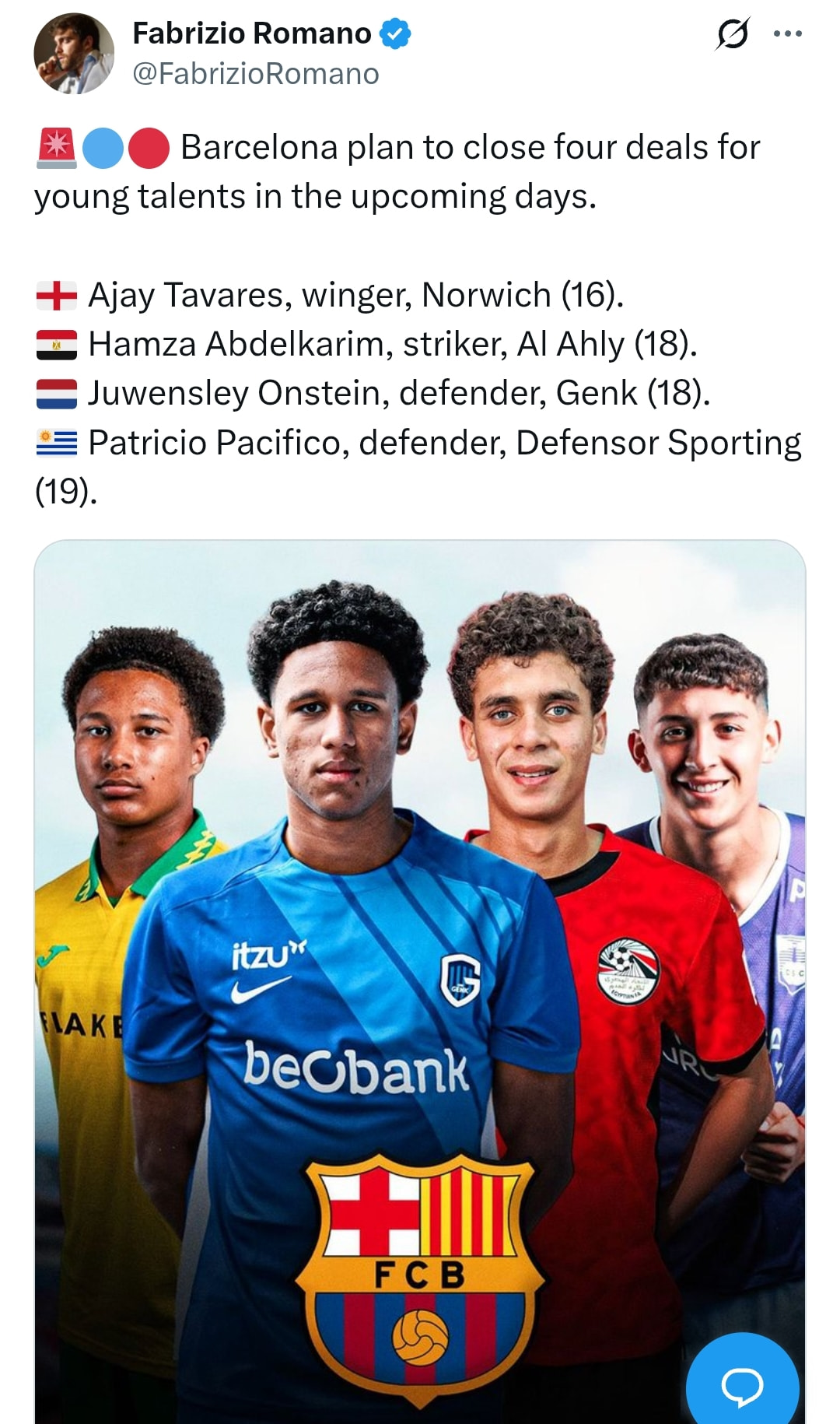 יש גם את וארלה הפורטוגלי , בן 16 או 17, דיברו עליו הרבה בקיץ והוא אמור להיות סגור לעונה הבאה.